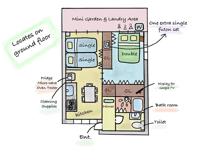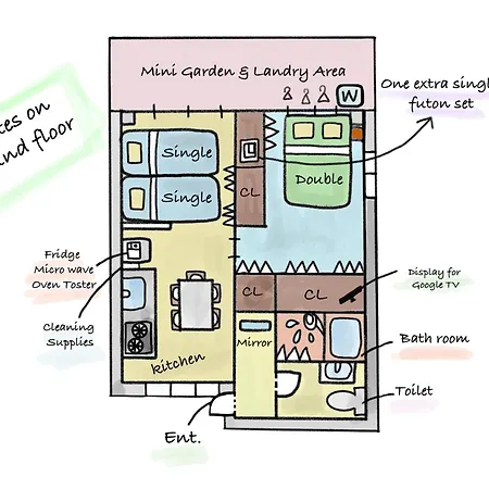 この寝室1室のアパートから中野ブロードウェイから2.4キロメートルで、長者橋公園までは数歩の距離です。 東京都の市内中心部まで静かに15分間散歩できます。
